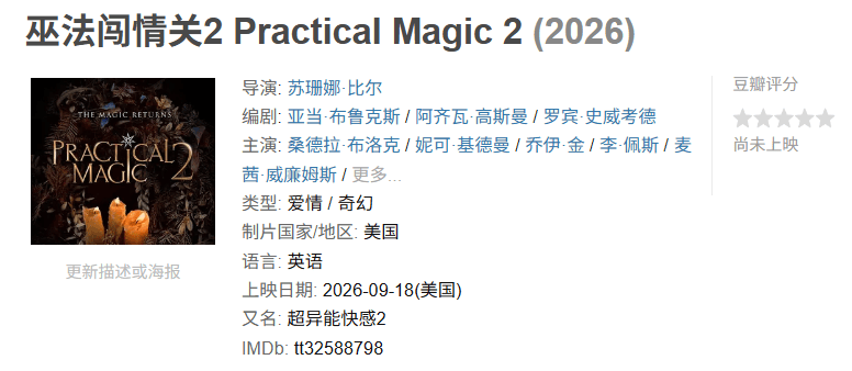 看点:在前作成为邪典经典近30年后,桑德拉·布洛克与妮可·基德曼再度重聚,演绎超自然浪漫喜剧。