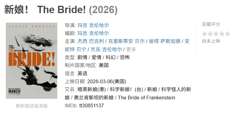 看点:观众近期对名导执导的恐怖片表现出浓厚兴趣。玛吉·吉伦哈尔以蒸汽朋克风格重新诠释《科学怪人》,视野宏大。